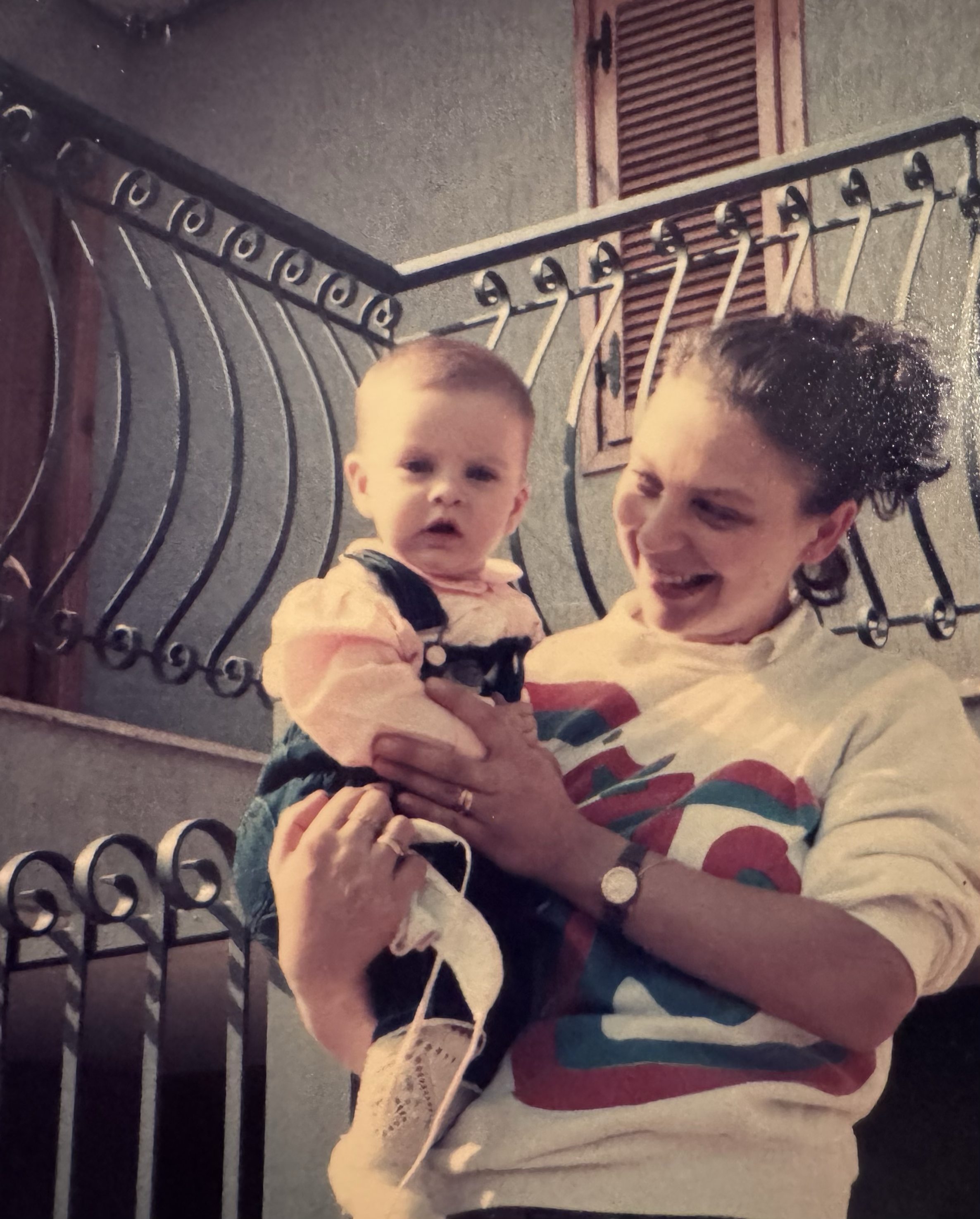 Nella memoria di un bambino: un evento speciale, un odore, un sapore! La casa di mia nonna, io che lavavo i piatti in giardino, l’odore del ciambellone marmorizzato in forno, “babymia” regalata tutti i Natali, l’amore per i vestiti e per la moda sin da piccola. Mia sorella, mamma e papà. Bari alle elementari e Lugano al liceo. I travestimenti che amavo, ma si sa, Burners si nasce!